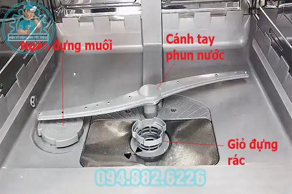 - Ngăn đựng muối – nước bóng – viên rửa: Giúp tăng hiệu quả làm sạch.