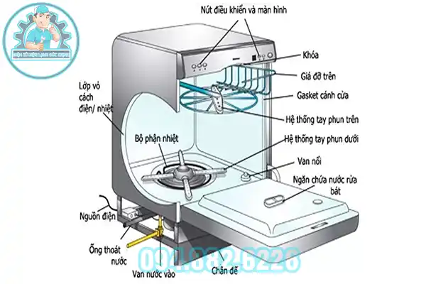 Tìm Hiểu Cấu Tạo Máy Rửa Bát Với Đầy Đủ Bộ Phận Trong Và Ngoài Thiết Bị